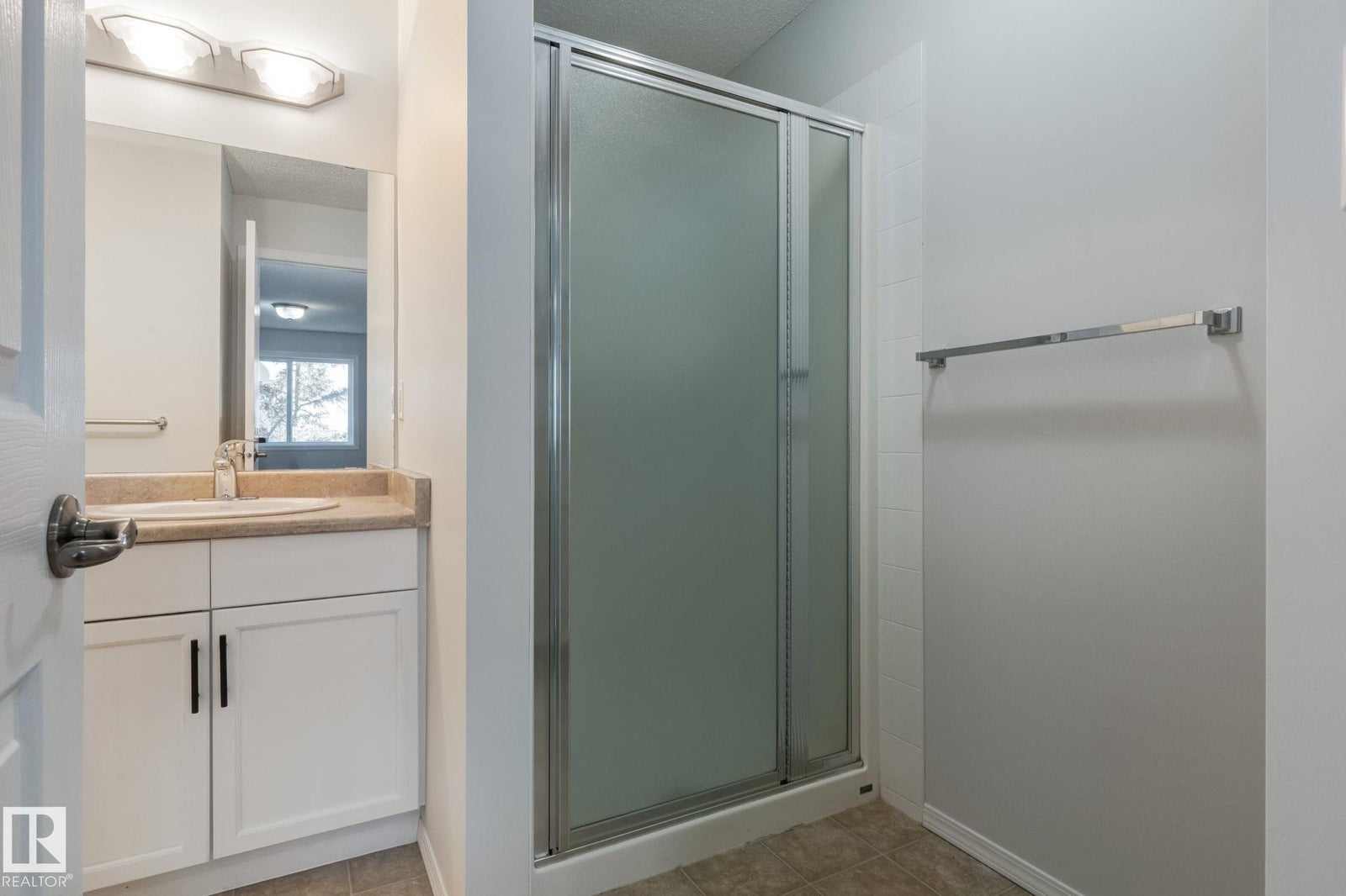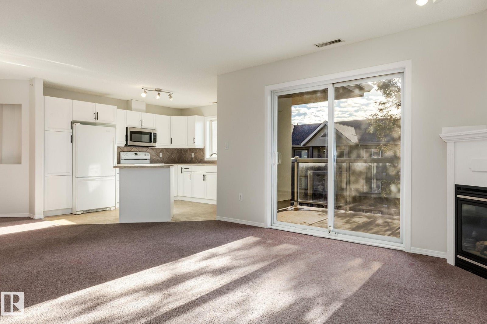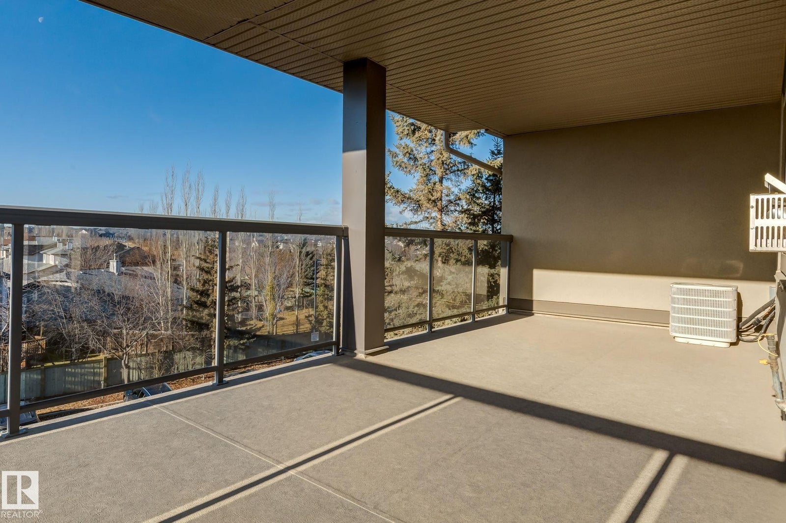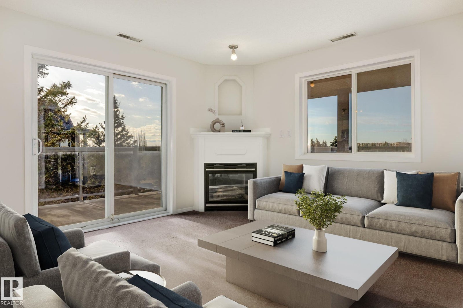 Welcome to Grande Lewis Estates! This bright, 2-bed plus den/office unit blends comfort and convenience with wonderful outdoor space. Enjoy central AC, a cozy gas fireplace, and that spacious balcony with serene views. The kitchen features crisp white cabinetry, tile backsplash, and ample natural light. Double oven is a great chef's touch! Primary bedroom features an ensuite and walk-in closet. In-suite laundry is a convenient touch. Includes 2 parking stalls (#331 & #336) and is well located in the heart of Lewis Estates with quick access to Henday, Whitemud, shopping, and amenities. Building updates are fully paid, with a strong reserve fund for peace of mind. A rare find in a prime location across the road from Lewis Estates Golf Course.
